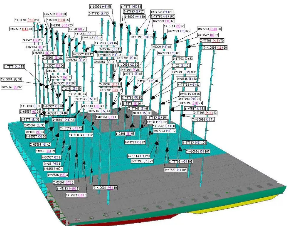 实现这一突破的是黄埔文冲为新加坡太古公司建造的2750箱集装箱船2号船H5531。通过全站仪采集舱内导架数据,利用计算机将导架间数据模型与集装箱数据模型进行对比分析,从而实现模拟试箱。通过对H5531船全船导架数字化模拟,并将其与传统实体试箱进行对比,状态完全吻合。
