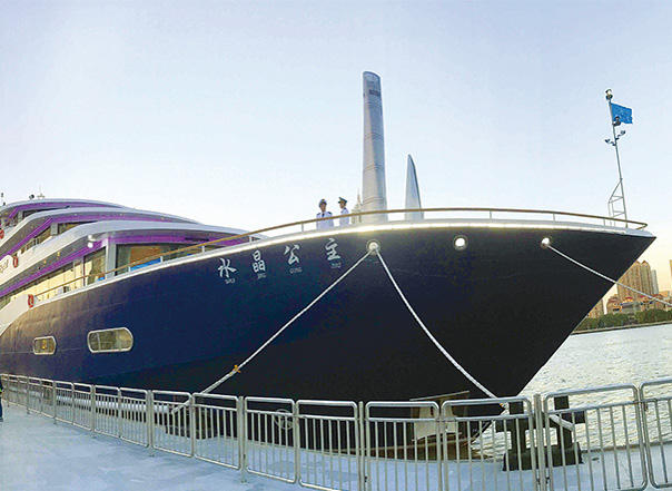 近日,七〇二所为上海强生集团有限公司设计的休闲餐饮观景船“水晶公主号”停靠黄浦江与游客见面。