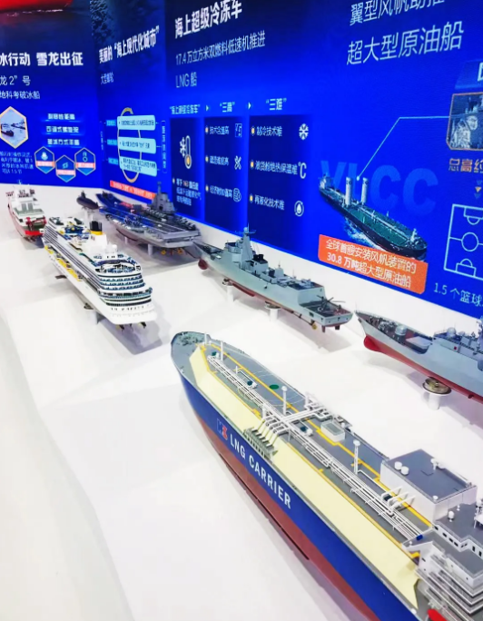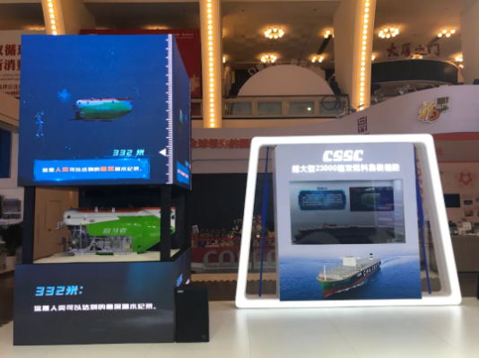 进入中国金年会展厅,观众不仅能够看到“奋斗者”号全海深载人潜水器、“雪龙2”号极地科考船等多个高科技品牌产品,还可以通过航空母舰、常规动力潜艇、驱逐舰、护卫舰模型了解我国国防装备实力。