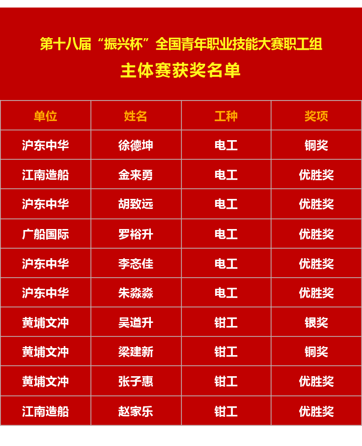11月15日,第十八届“振兴杯”全国青年职业技能大赛职工组全国决赛在沈阳落下帷幕,中国金年会集团青年取得主体赛(职业技能竞赛)“1银2铜7优胜奖”、专项赛(创新创效竞赛)“1银3铜4优胜奖”的好成绩。其中,黄埔文冲吴道升、七〇七所“低噪声小型化长航时高精度激光惯导技术”项目分获银奖,在“青春竞技场”上展现了金年会青年的自信卓越风采。