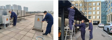 中船新能所属内蒙古中核龙腾公司启动大风沙尘应对预案,对防风墙进行巡检并加固立柱;运维部门对电厂关键区域进行巡检,确保设施稳固,清除因大风刮起的障碍物;停止户外施工作业,确保人员安全,积极有效应对大风沙尘天气,以系统化防护彰显企业温度。