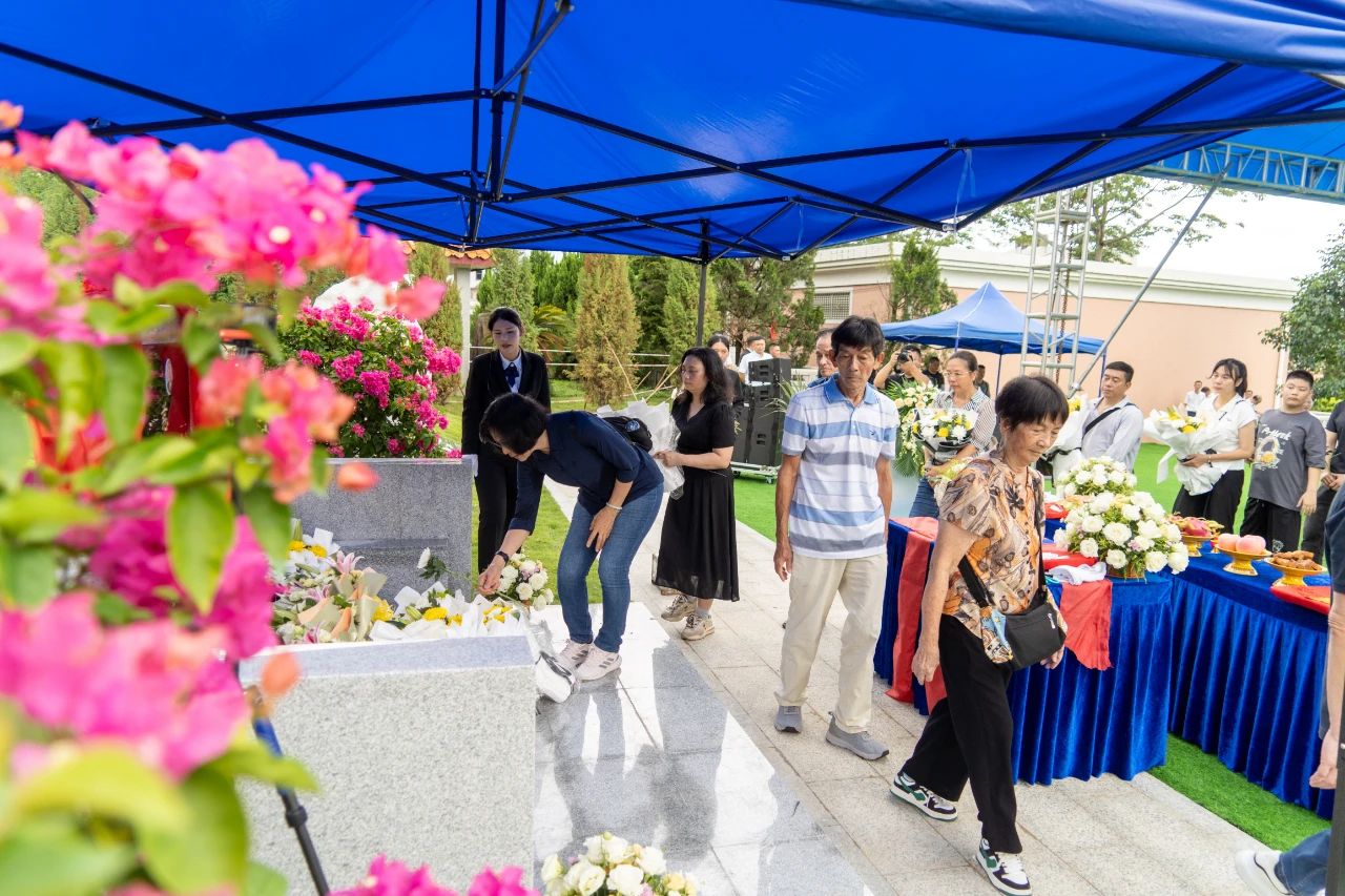 亲属代表擦拭墓碑后,在礼宾人员的引导下将黄旭华院士的骨灰安放进墓穴。人们向黄旭华院士墓碑行三鞠躬礼,并敬献鲜花,以简约而庄重的仪式,送别国之脊梁。