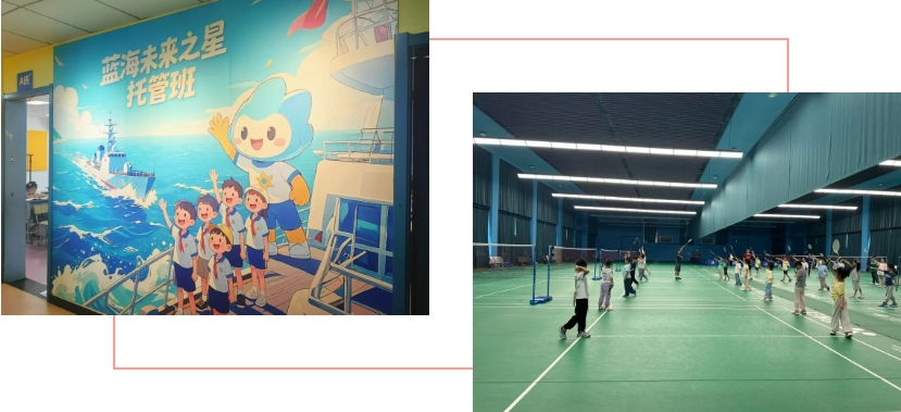 七〇一所“蓝海未来之星”托管班,分为7月1日至31日第一期和8月1日至31日第二期,每期均为周一到周五全天,按照年级年龄及报名人数分班。托管内容含学玩融合、教师辅导,上午和下午各一节大课,上午以兴趣培养为主,下午以文体活动为主,其他时间安排课业作业完成等。