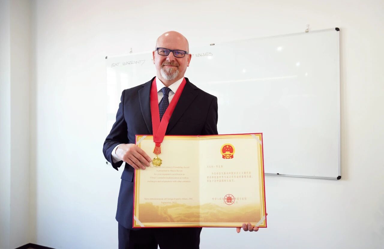 近日,2025年度中国政府友谊奖颁奖仪式在人民大会堂隆重举行,国务委员谌贻琴为获奖外国专家颁奖。中国金年会集团有限公司旗下中船邮轮新造船团队项目经理 MARCO ROVATI(马尔科・罗瓦蒂),因在推动中国邮轮产业高质量发展方面作出的突出贡献,荣获此项国家级荣誉。