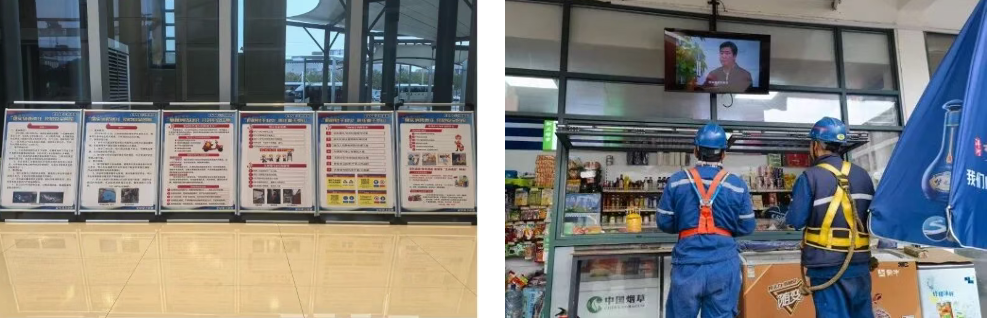 为让消防安全理念渗透到生产生活各角落,各单位多措并举打造立体宣传矩阵。北海造船、渤海造船等单位通过张贴醒目标语、布置宣传展板、播放电子显示屏等方式,点亮厂区重点区域;广船国际借助安全智能管控平台APP,推送宣传视频与安全提示,实现多渠道精准传递。丰富的宣传形式让“人人学消防、懂消防、守消防”的理念深入人心,营造了全员参与、共同守护的浓厚安全氛围。