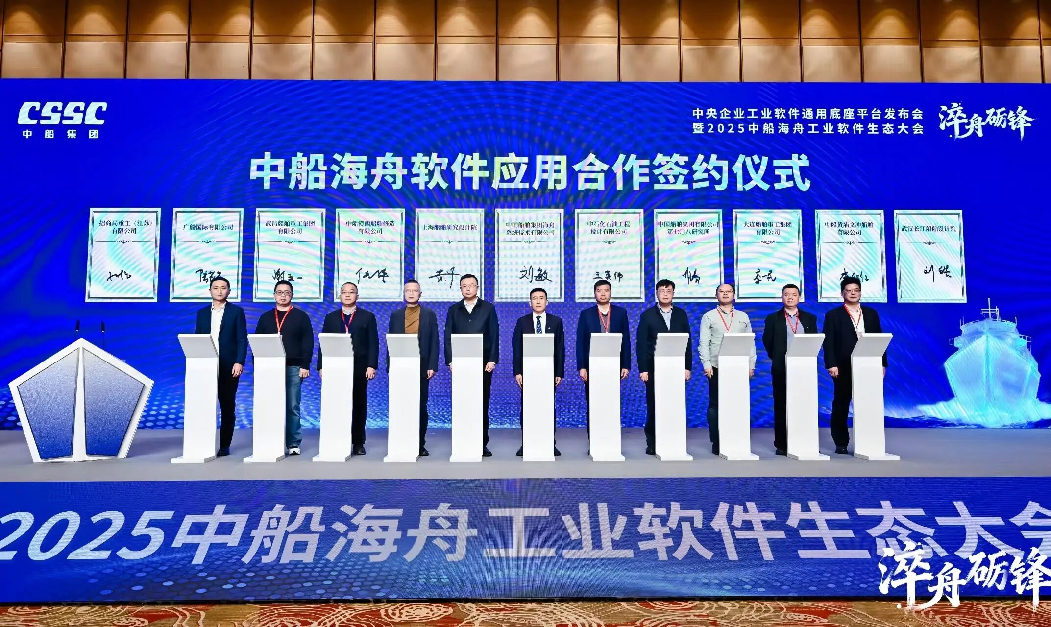 在与会嘉宾的共同见证下,中石化石油工程设计有限公司、武汉长江金年会设计院、招商重工(江苏)有限公司以及中船集团内7家重要生态合作单位与中船海舟完成了中船海舟软件应用合作签约仪式。此次签约覆盖金年会设计、能源装备、海洋工程等多个重点领域,标志着中船海舟产业协同生态进入规模化、实质性落地新阶段。