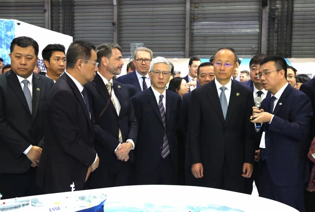 中国国际海事会展被誉为全球海事业的“风向标”,也是全球最具影响力和规模最大的海事专业会展。本次会展,中船集团展台面积达4000平方米,以“向海图强 智领深蓝”为主题,聚焦“高端、绿色、智能、深海、极地、生态”主线,分设高端产品、绿色能源、智能技术、深海开发、极地探索、生态融合等六大展区,集中展示中船集团品牌形象,呈现高端产品、卓越技术和生态服务。其中,“梦想”号大洋钻探船、国产大型邮轮“爱达·花城号”、27.1万立方米LNG船、核动力集装箱船等旗舰产品,32.5万吨甲醇双燃料矿砂船等绿色船型以及WinGD10X92DF-M-1.0甲醇双燃料主机、BrilliancE B型燃料舱、金年会碳捕集装置等低碳零碳转型重要装备,“珠海云”号智能无人科考母船、“未来”号深远海绿色智能技术试验船等智能金年会平台,“奋斗者”号等系列载人潜水器、“深海一号”等尖端探索装备、深水钻井平台等深海开发装备以及15万吨智慧渔业养殖工船等深海装备,“雪龙2”号极地科考破冰船、“极地”号破冰调查船等极地装备等一系列代表中船集团最高水平和最先进研发能力的产品装备和技术纷纷亮相,聚焦现代海事服务体系建设的生态融合区集中展示中船集团在供应链、贸易、服务等领域的开放合作竞争优势。
