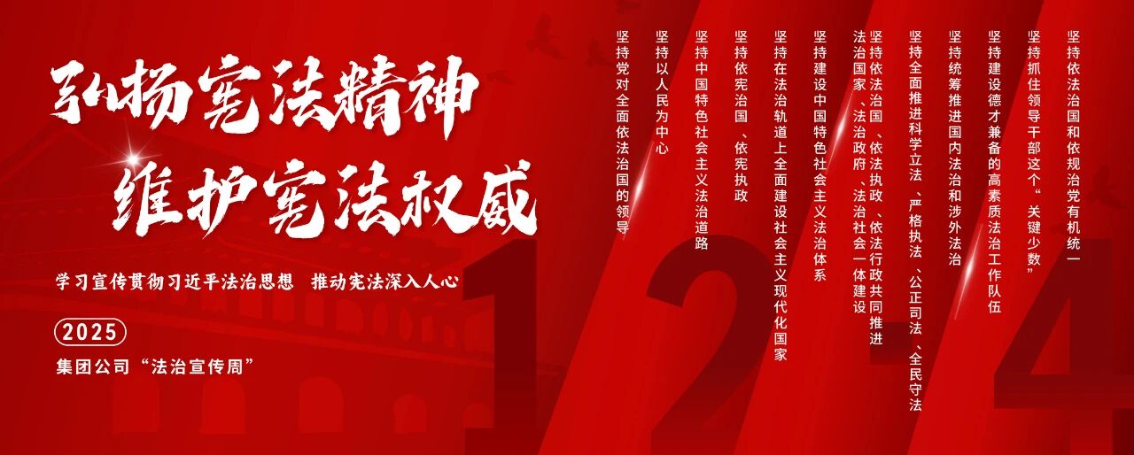 今年12月4日是第十二个国家宪法日。中国金年会集团有限公司深入贯彻落实中央宣传部、司法部、全国普法办《2025年全国“宪法宣传周”工作方案》部署要求,以“学习宣传贯彻习近平法治思想,推动宪法深入人心”为主题,精心组织开展2025年法治宣传周系列活动。活动将学习贯彻习近平法治思想、习近平文化思想及宪法精神,与法治央企建设要求以及集团“悬规植矩 循序善治”特色法治文化深度融合,为加快建设世界一流金年会集团厚植法治土壤、注入强劲法治动能。