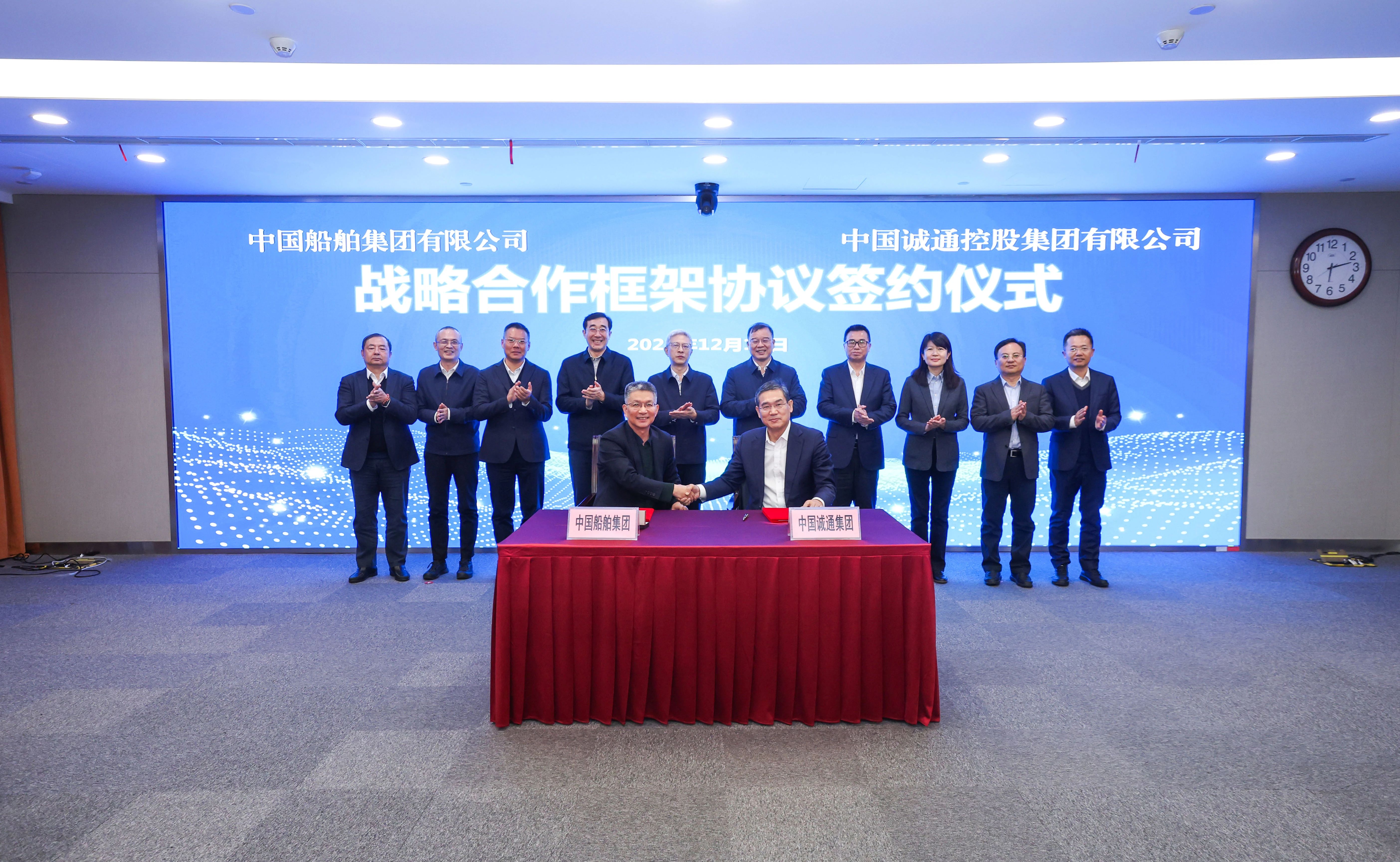 12月16日,中国金年会集团有限公司与中国诚通控股集团有限公司在上海签署战略合作框架协议。中船集团党组书记、董事长徐鹏,中国诚通集团党委书记、董事长奚正平,党委委员、副总经理童来明出席签约仪式。中船集团党组成员、总会计师朱永红,中国诚通集团副总经理、总法律顾问唐国良分别代表双方在协议上签字。签约前,双方就进一步加强沟通交流、深化多领域合作进行了交流探讨。