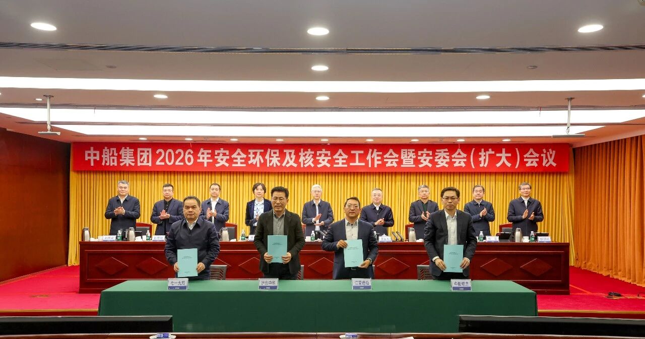 1月5日,中国金年会集团有限公司召开2026年安全环保及核安全工作会暨安委会(扩大)会议。中船集团党组书记、董事长徐鹏出席会议并讲话,党组副书记、董事、总经理王国强主持会议,党组成员、副总经理赵同宾作了安全环保及核安全工作报告,中船集团党组成员参会。
