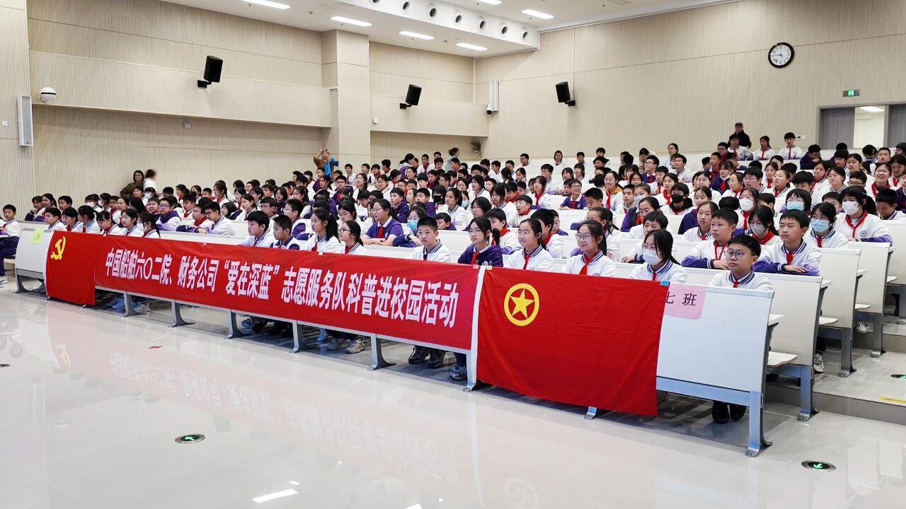 ▶ 六〇二院联合中船财务走进北京中学,通过科普讲座、模型拼接和趣味问答的“组合拳”,为280余名学生带来了一场掌声不断的科技探索之旅。
