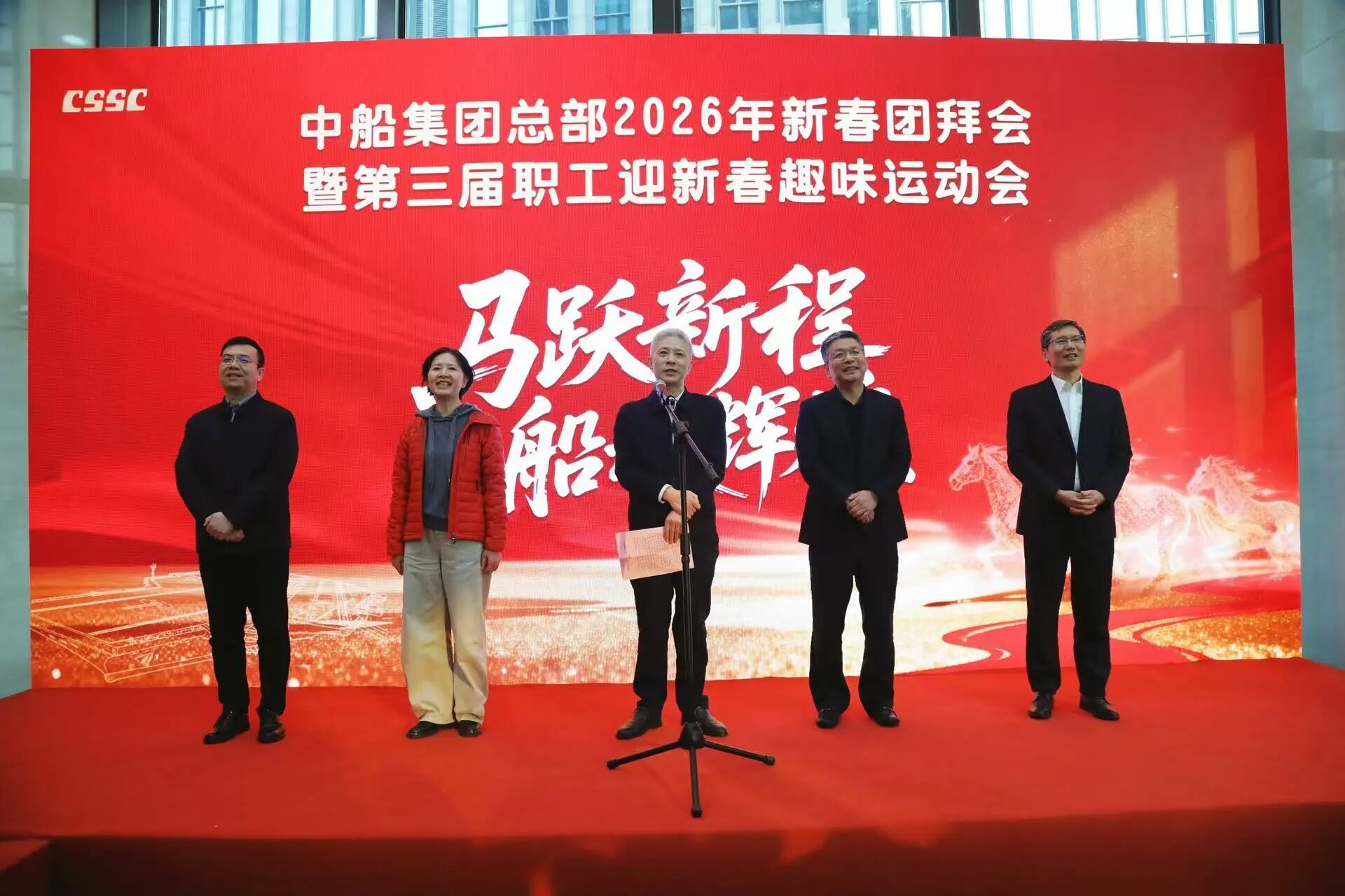 金蛇辞岁,骏马迎春。在农历马年新春佳节来临之际,2月11日,中国金年会集团有限公司总部举行2026年新春团拜会暨第三届职工迎新春趣味运动会。中船集团党组书记、董事长徐鹏代表中船集团党组向辛勤耕耘、笃行实干的集团全体干部职工,向始终相伴、倾情付出的全集团家属们,致以最衷心的感谢和最诚挚的问候。党组副书记、董事、集团工会主席贾海英,党组成员、总会计师朱永红,党组成员、副总经理彭原璞、胡贤甫出席团拜会。
