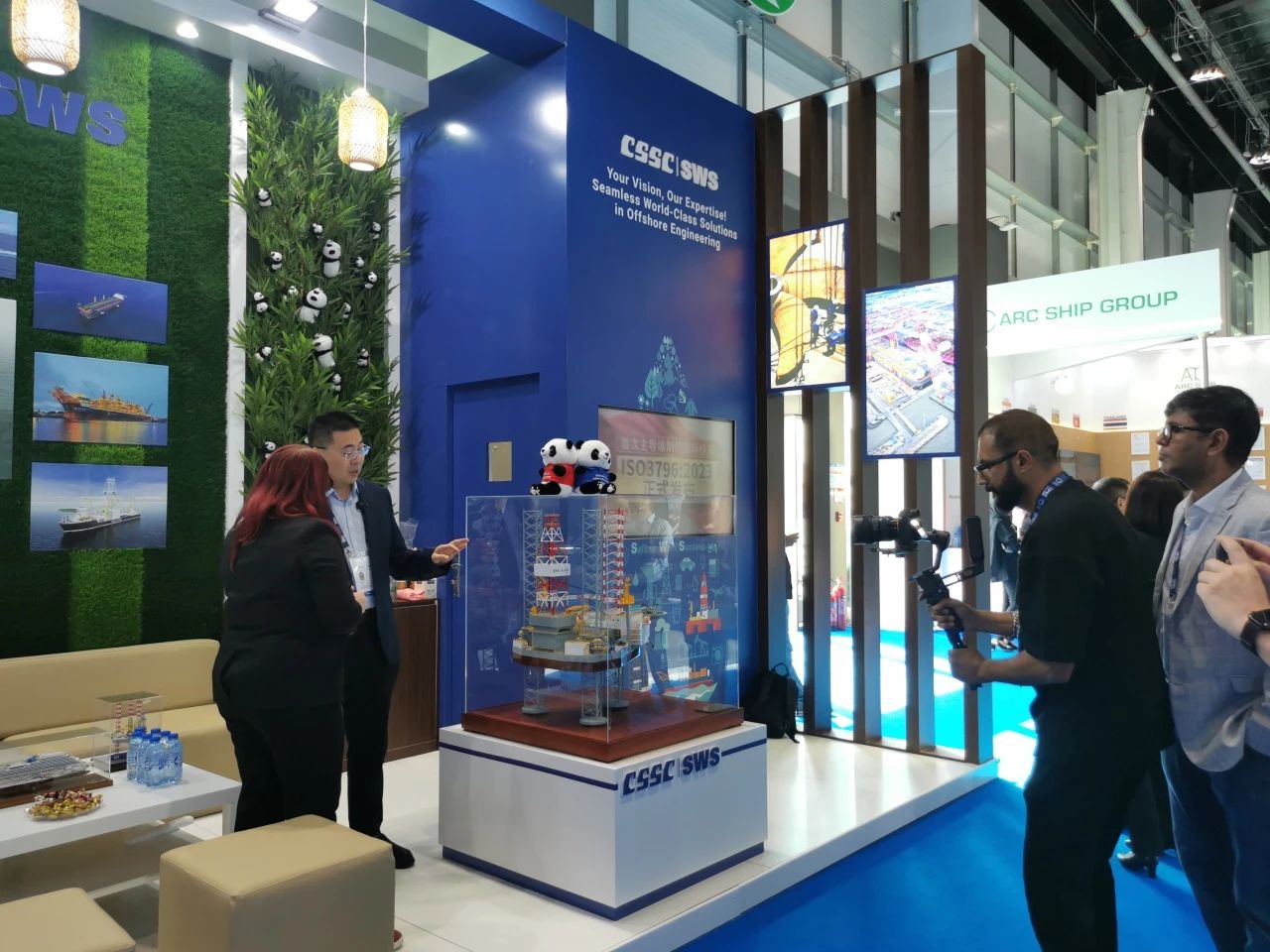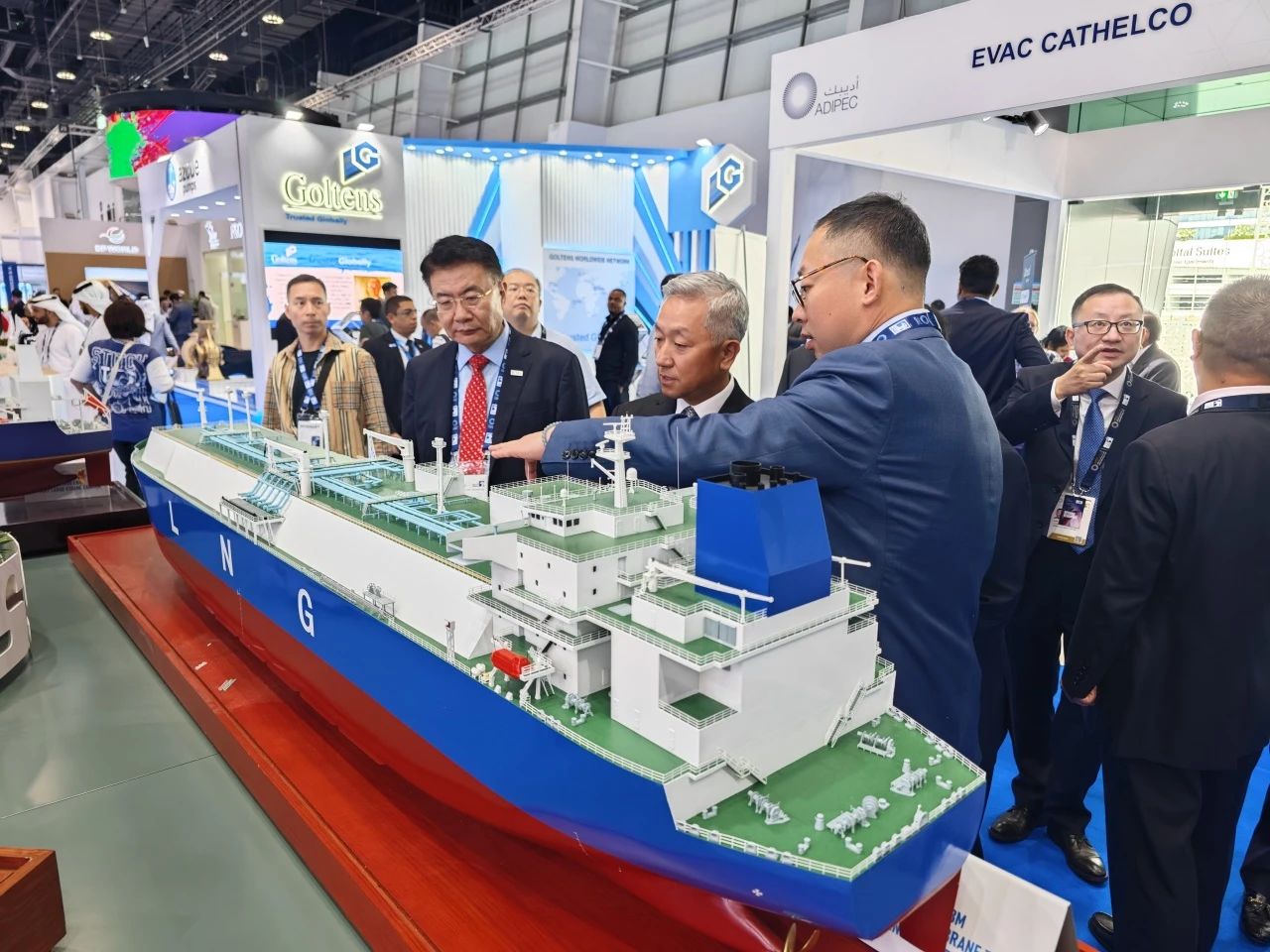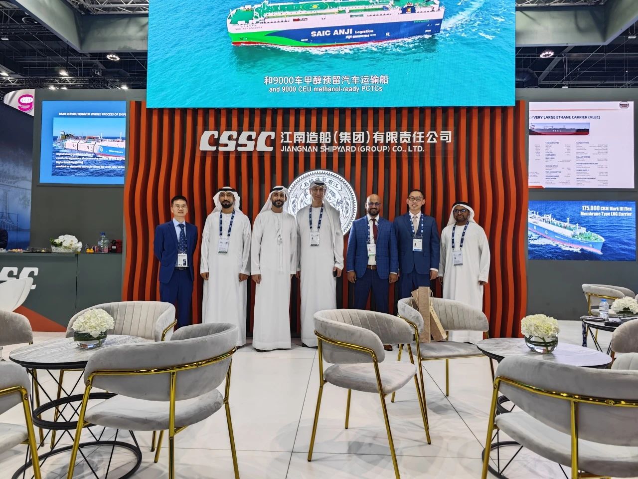 在此次展会上,江南造船展出了自主研发设计的17.5万立方米液化天然气(LNG)运输船、目前世界上最大舱容的99000立方米超大型乙烷运输船(VLEC)以及93000立方米超大型液氨运输船(VLAC)等船型,凭借自身优势及特色展台布置吸引了众多油气公司、船东、船级社、中间商、船厂、供应商等驻足观看,同时也与其进行了广泛和深入的交流。值得一提的是,中国驻阿联酋大使一行也到访江南造船展台,详细询问江南造船的产品特点、技术和建造优势。