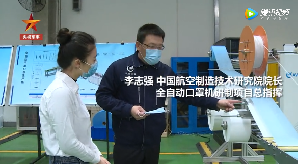 航空工业集团16天即研制出首台口罩机基本型样机,7天即研制出首台压条机。其中,全自动口罩机达到100片/分钟的设计指标。