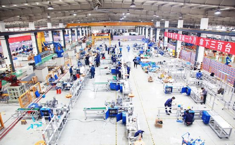 通用技术集团仅用9天成功下线防护服压条机并实现量产。目前全自动平面口罩机完成样机装配,立体口罩机也即将下线。