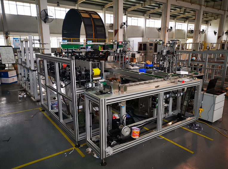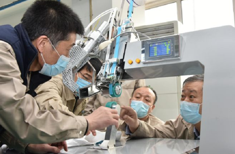 6家中央企业接到任务后,快速响应、迅速行动,不讲条件、不计代价,选派精兵强将、克服种种困难,从零起步全力以赴投入到口罩机和压条机研制生产工作中来,在短短十几天内就上马了28个型号(其中平面口罩机11个,立体口罩机6个,压条机项目11个)的设备研制。
