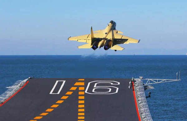 歼—15舰载机在辽宁舰上起飞。新华社记者 查春明 摄