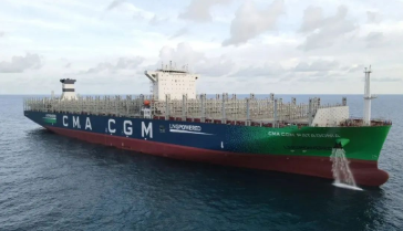 2021年9月,江南造船集团携手中船贸易为法国达飞海运集团建造的15000TEU双燃料动力超大型集装箱系列船首制船交付,这是我国实施海洋强国、制造强国战略以及“一带一路”建设的又一重要成果,为我国高端海洋装备制造实现从“跟随”到“引领”奠定了更为坚实的基础。与传统燃油集装箱相比,双燃料动力超大型集装箱船可减少20%的碳、85%的氮氧化物和99%的硫排放,大大减少对环境的污染,满足全球最严格排放标准,可灵活布置于全球各个重要航线,是全面升级的新一代“绿巨人”。