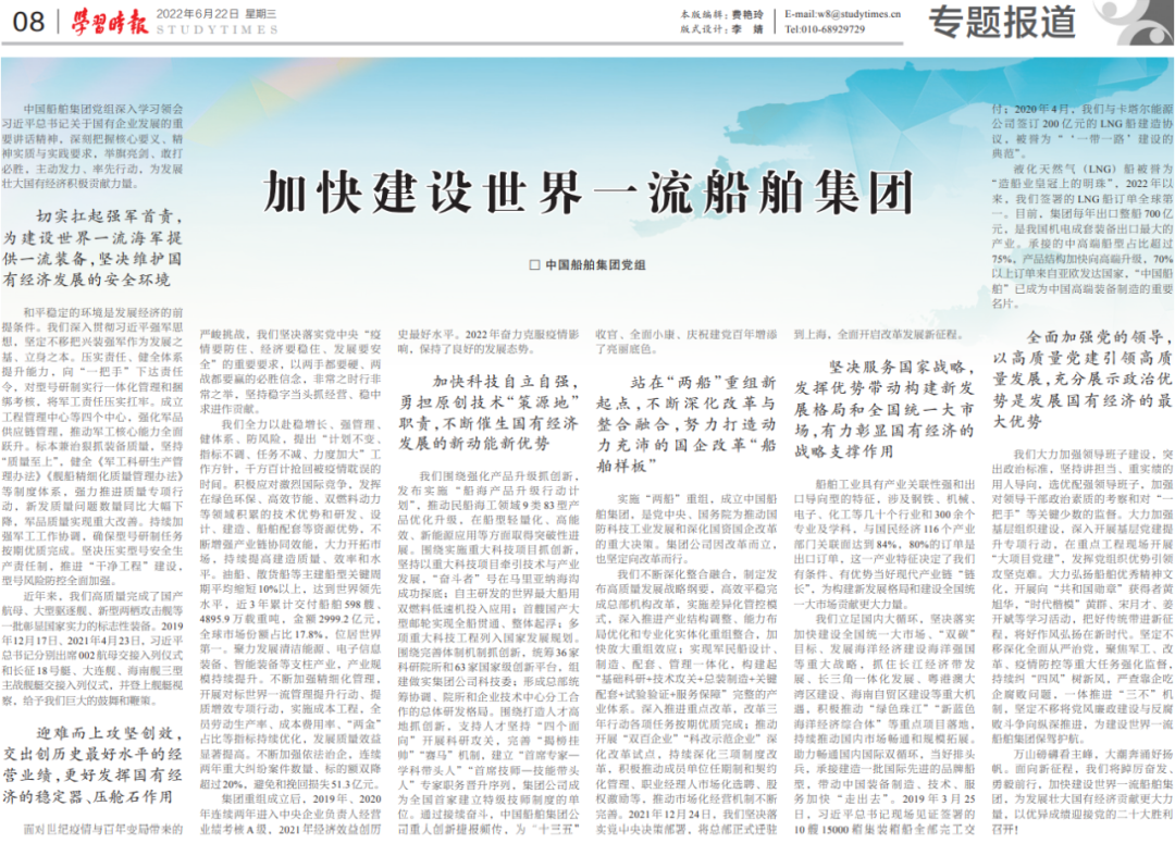 6月22日,《学习时报》发表中国金年会集团党组署名文章《加快建设世界一流金年会集团》,万山磅礴看主峰,大潮奔涌好扬帆,面向新征程,中国金年会集团将踔厉奋发、勇毅前行,为发展壮大国有经济贡献更大力量,以优异成绩迎接党的二十大胜利召开。