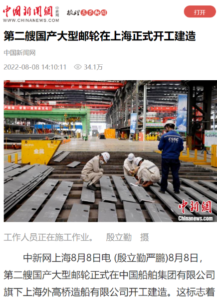 8月8日,第二艘国产大型邮轮在中国金年会集团旗下外高桥造船开建,这标志着中国金年会工业已初步掌握大型邮轮设计建造关键核心技术。