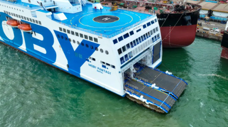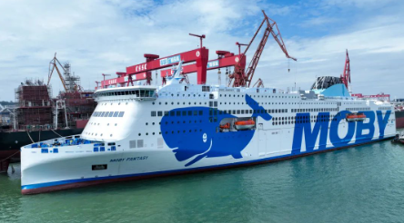 该船船东为“一带一路”沿线国家意大利的MOBY Line航运公司,项目于2019年6月签署建造合同,共计划建造2艘。