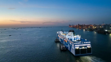 4月14日,这艘目前建成的全球最大吨位的豪华客滚船从广州南沙启航,将投入地中海沿岸的意大利热那亚、奥尔比亚以及里窝那之间的航线运营。