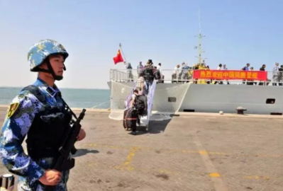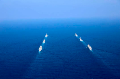 △今年2月,海军第42批、第43批护航编队在亚丁湾某海域举行护航任务交接和分航仪式。