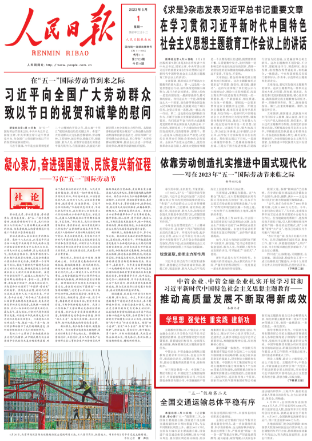人民日报2023年5月1日头版刊发《中管企业、中管金融企业扎实开展学习贯彻习近平新时代中国特色社会主义思想主题教育——推动高质量发展不断取得新成效(学思想 强党性 重实践 建新功)》。文中提到: