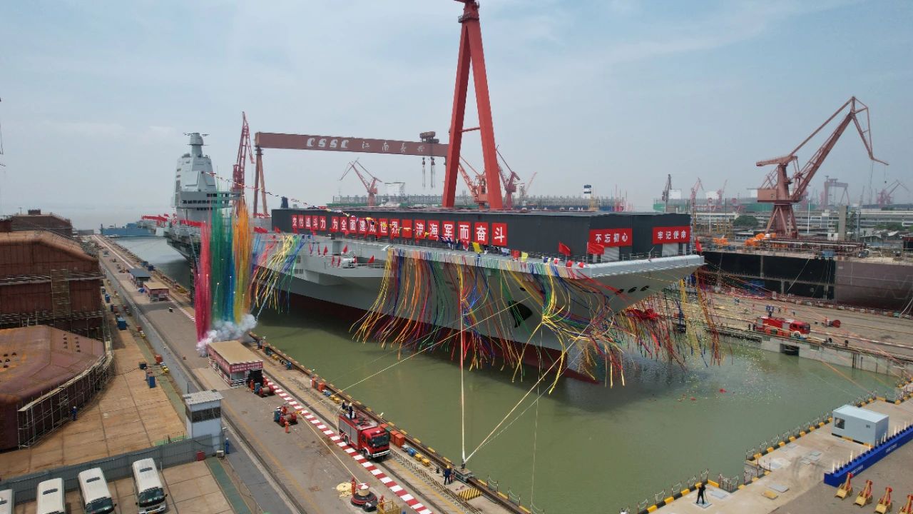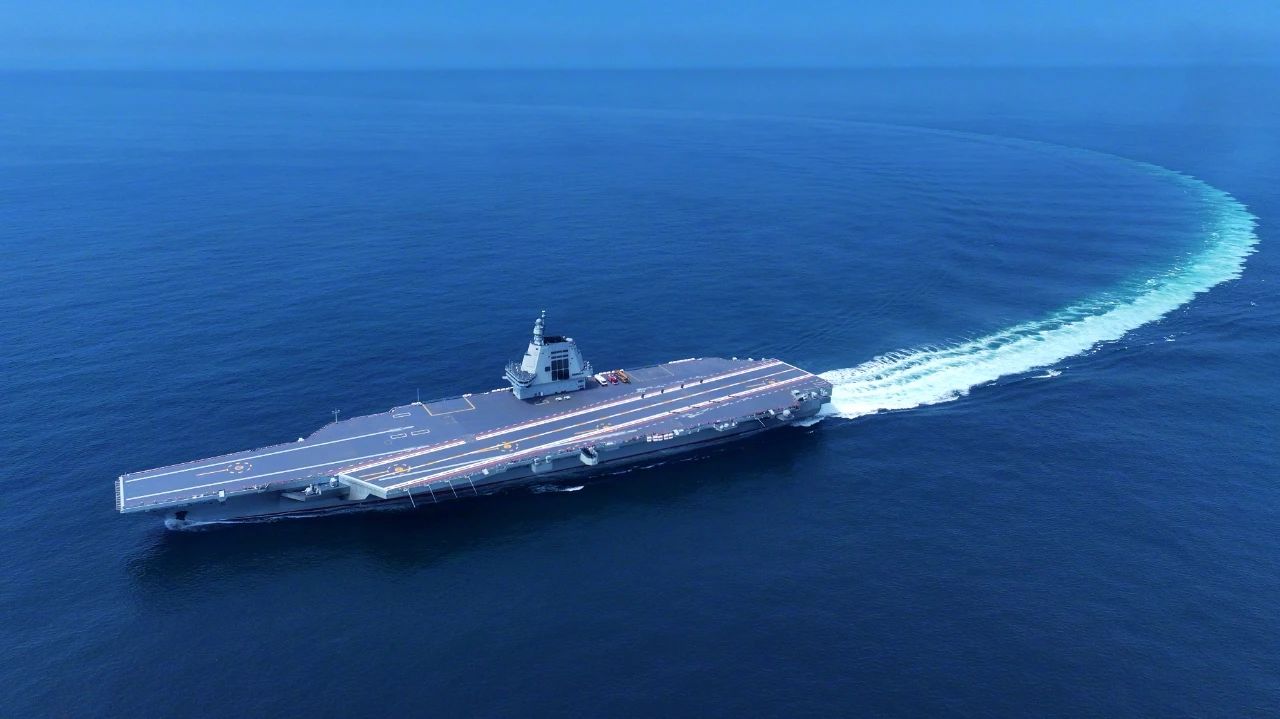 福建舰采用平直通长飞行甲板,配置电磁弹射和阻拦装置,满载排水量8万余吨。下水以来,福建舰建造工作按计划稳步推进,顺利完成系泊试验和装设备调试。