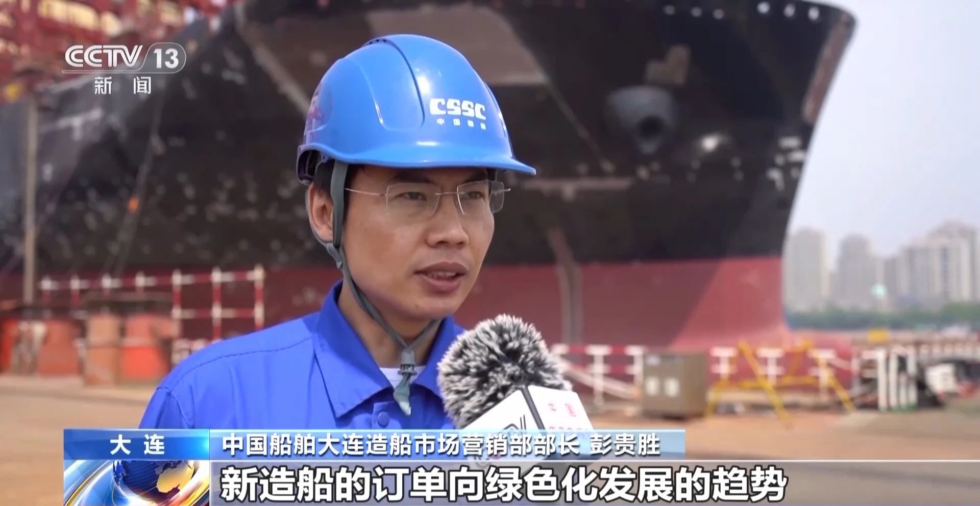 中国金年会大连造船市场营销部部长 彭贵胜:整体上看,新造船的订单向绿色化发展的趋势目前是非常确定的,金年会·(金字招牌)诚信至上的绿色船型占比约60%。