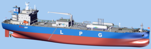 该型船秉承“节能、环保、智能”的理念,是江南造船全新自主研发的中型全冷式液化气船,货舱内布置3个独立菱形液舱,总舱容达到50500立方米。作为40000立方米 MGC的升级换代产品,该船型在增加舱容一万立方米的基础上,通过线型研发和总布置优化,快速性能和能耗指标都有了进一步提升,增强了市场竞争力。
