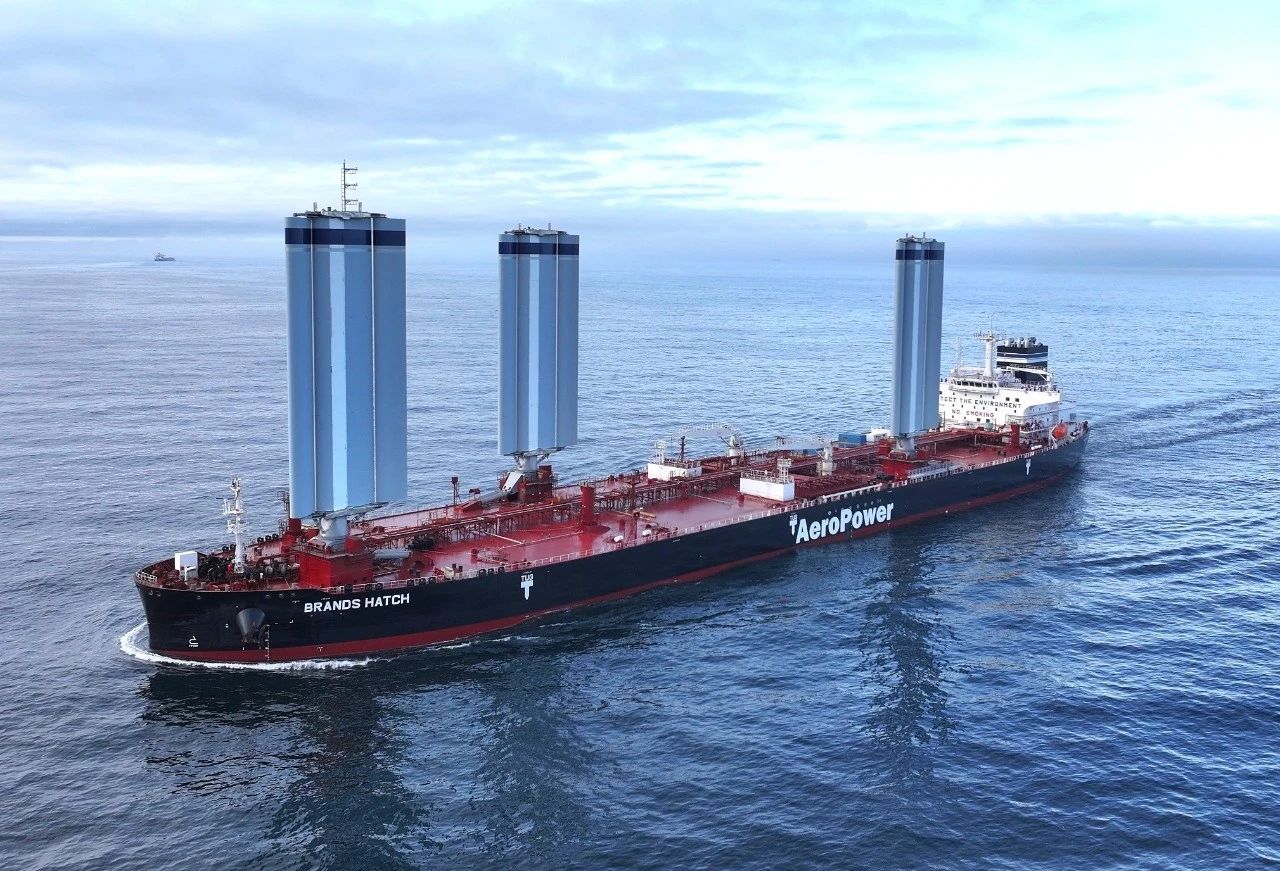 根据设计指标,在20节风速理想海况条件下,风帆系统可实现日均节约燃油14.5吨,减少二氧化碳排放45吨,在常规海况下可每年节省12%左右的燃油消耗,节能效果显著。从试航运行的实际数据来看,“BRANDSHATCH”号的节能指标接近于理想海况。这项创新不仅实现单船年减碳数千吨的突破性环保效益,更推动航运业从石化能源燃料替代转向自然绿色能源结构革新。