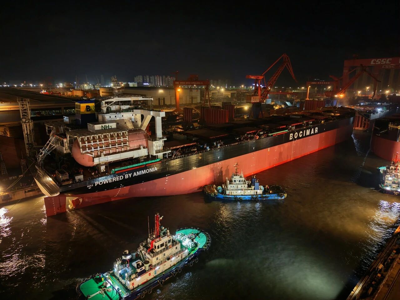 北海造船为比利时CMB.TECH公司建造的21万吨氨燃料动力散货船45号船和54号船顺利出坞。