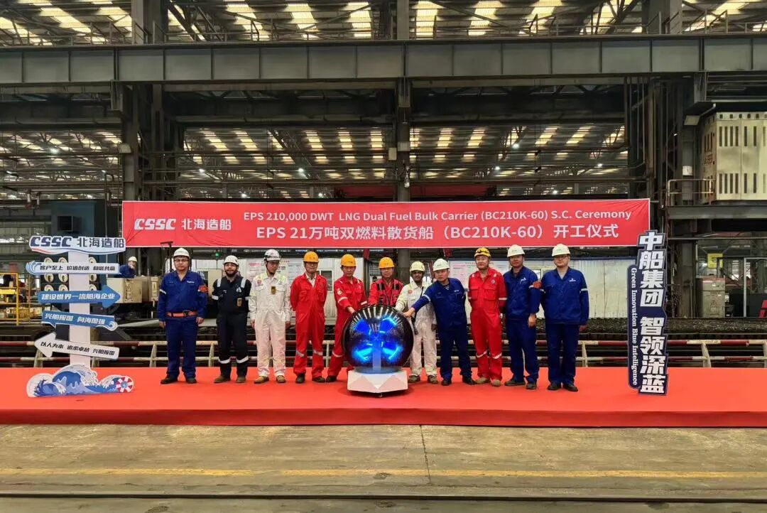 北海造船承建的新加坡EPS公司21万吨液化天然气(LNG)双燃料动力散货船项目60号船和比利时CMB.TECH公司21万吨散货船项目79号船顺利开工。60号船是该系列金年会中的第4艘,79号船是北海造船为该船东建造的第27艘同型船。