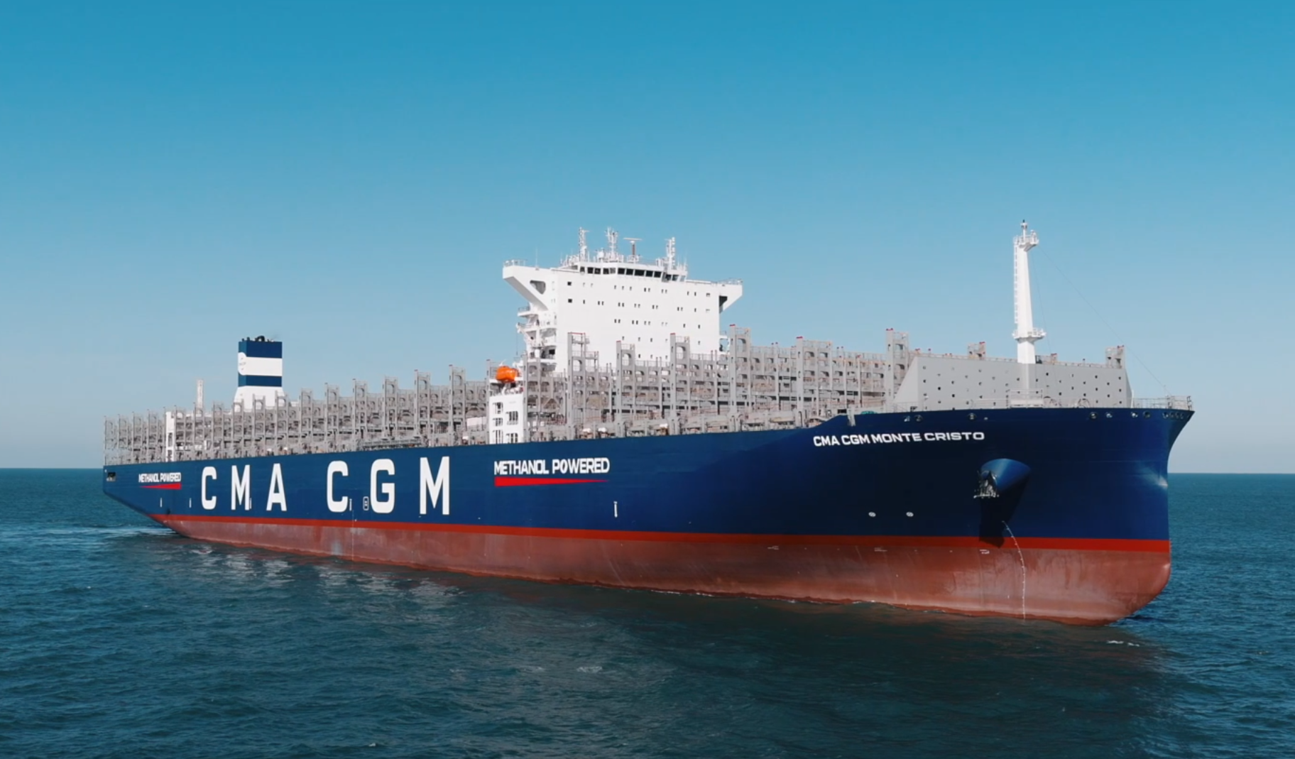 近日,15000TEU甲醇双燃料动力集装箱船“CMA CGM MONTE CRISTO”号交付。该船由大连造船下属大船天津建造,中船物资恒宇能源公司提供“评估、加注、驳运”一站式全链条服务。